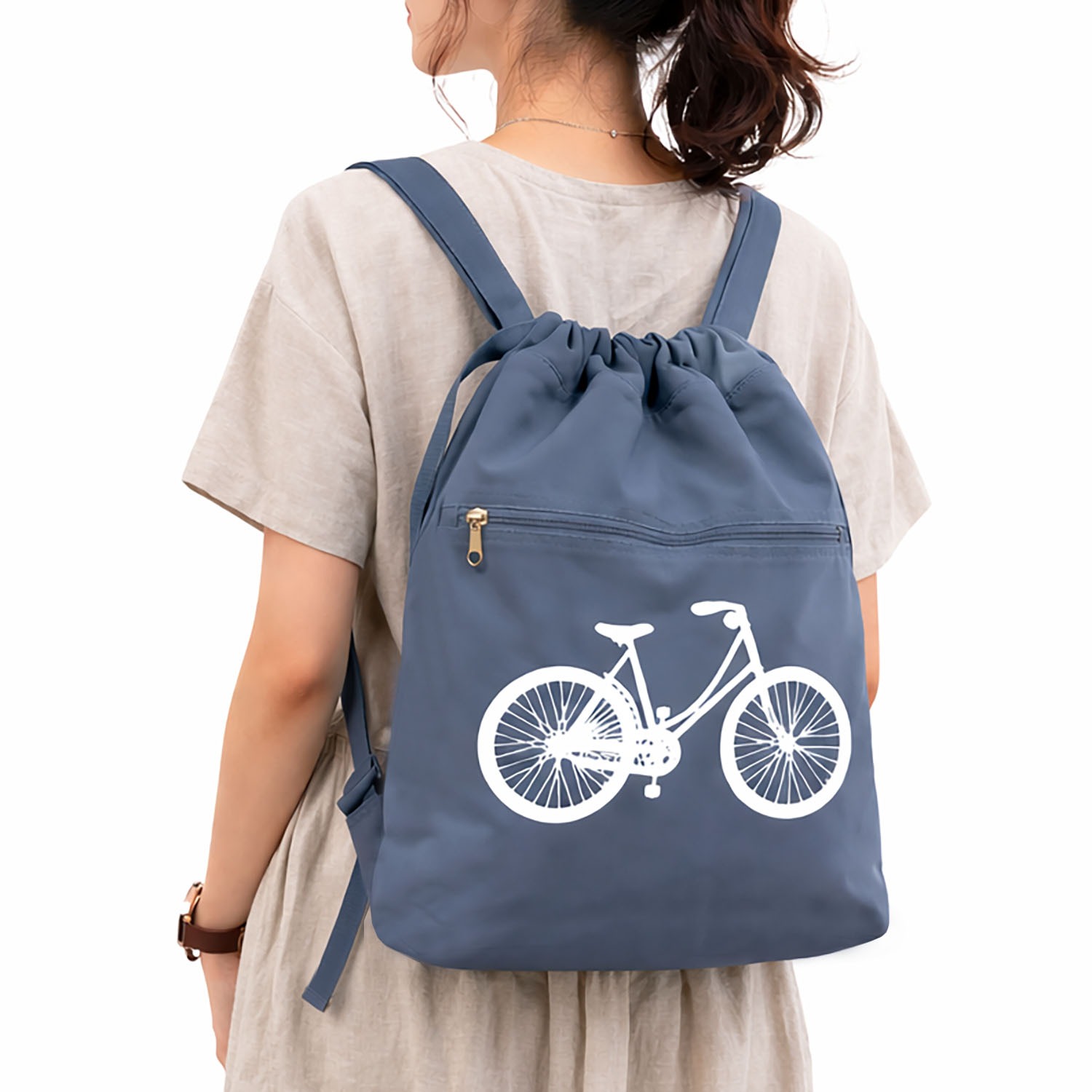 • Features: Drawstring closure, zippered front pocket, shoulder straps