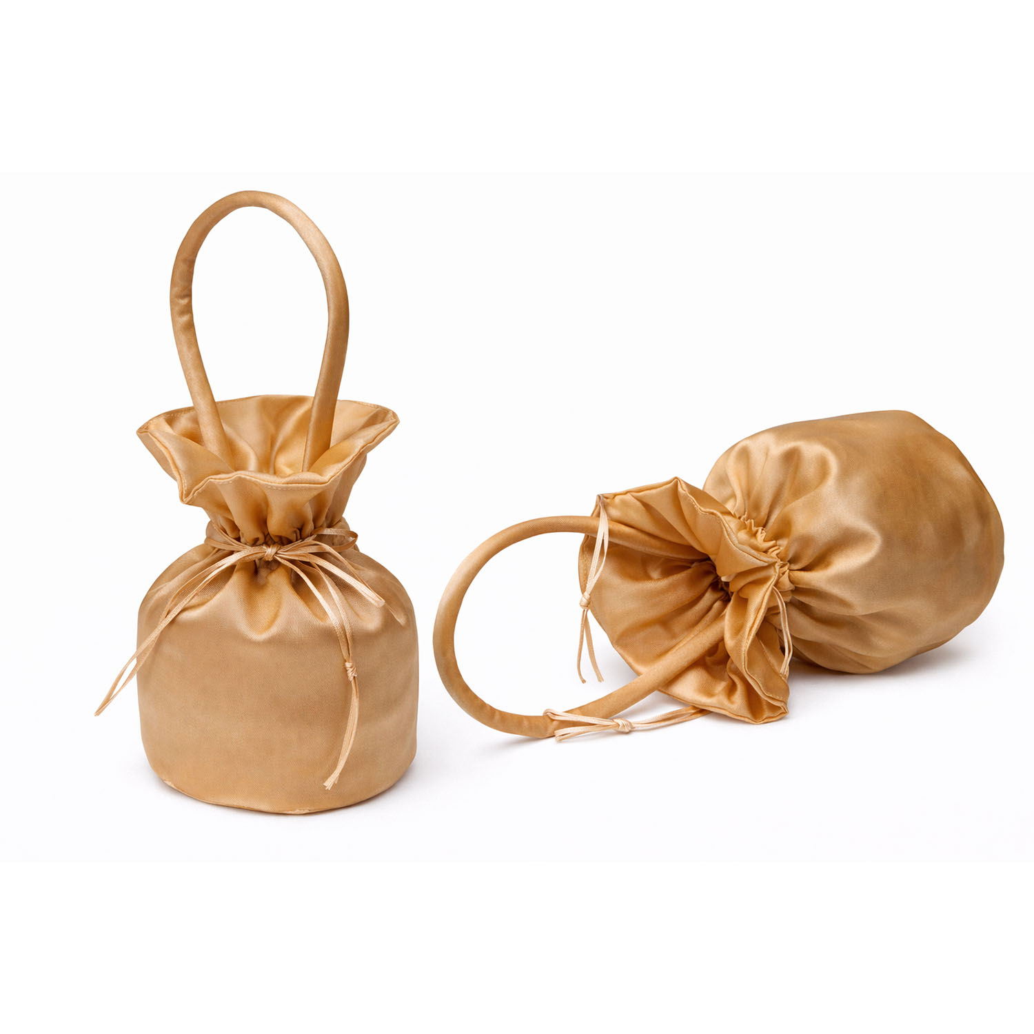 Champagne Silk Evening bag With Wrist handle & Drawstring For Gala Parties Or As Bridesmaid Bag