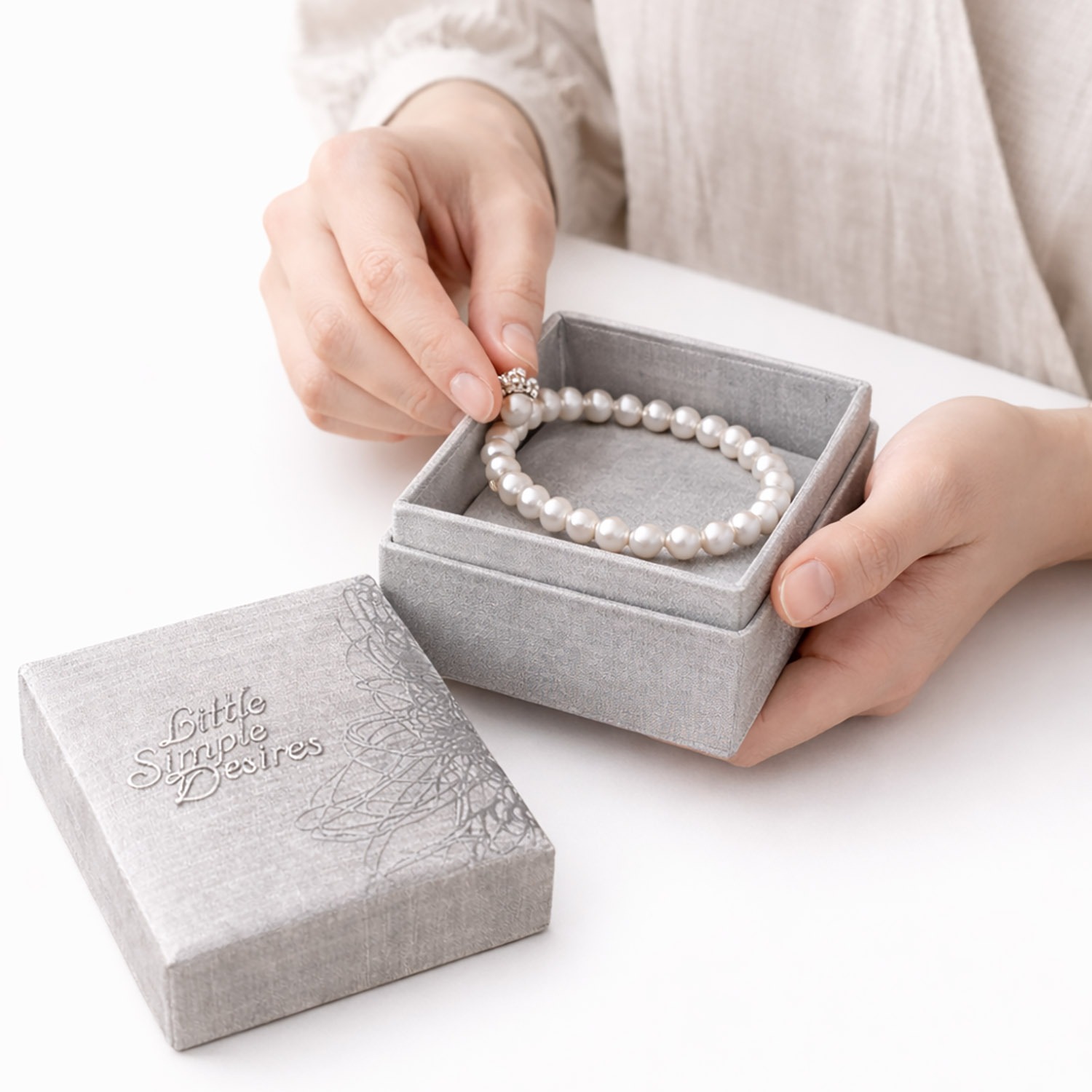Customers can also choose silk colors, ribbon accents, and box dimensions to create a truly unique packaging solution. The featured version comes in a sophisticated silver-grey tone, but a wide spectrum of colors is available upon request.