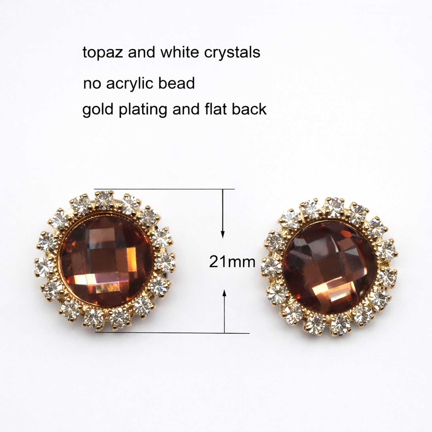 Crafted with a high-quality gold-plated frame, this crystal button offers a rich and luxurious appearance. The polished setting enhances the brilliance of the topaz center stone and surrounding crystals, making it ideal for upscale designs.