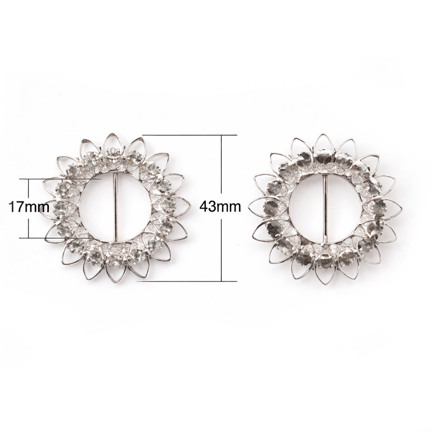 Enhance your designs with this star-shaped round flower buckle, crafted in a refined silver finish and adorned with a single layer of precisely set rhinestones. The delicate floral pattern creates a timeless and luxurious look, ideal for upscale wedding and event styling.
