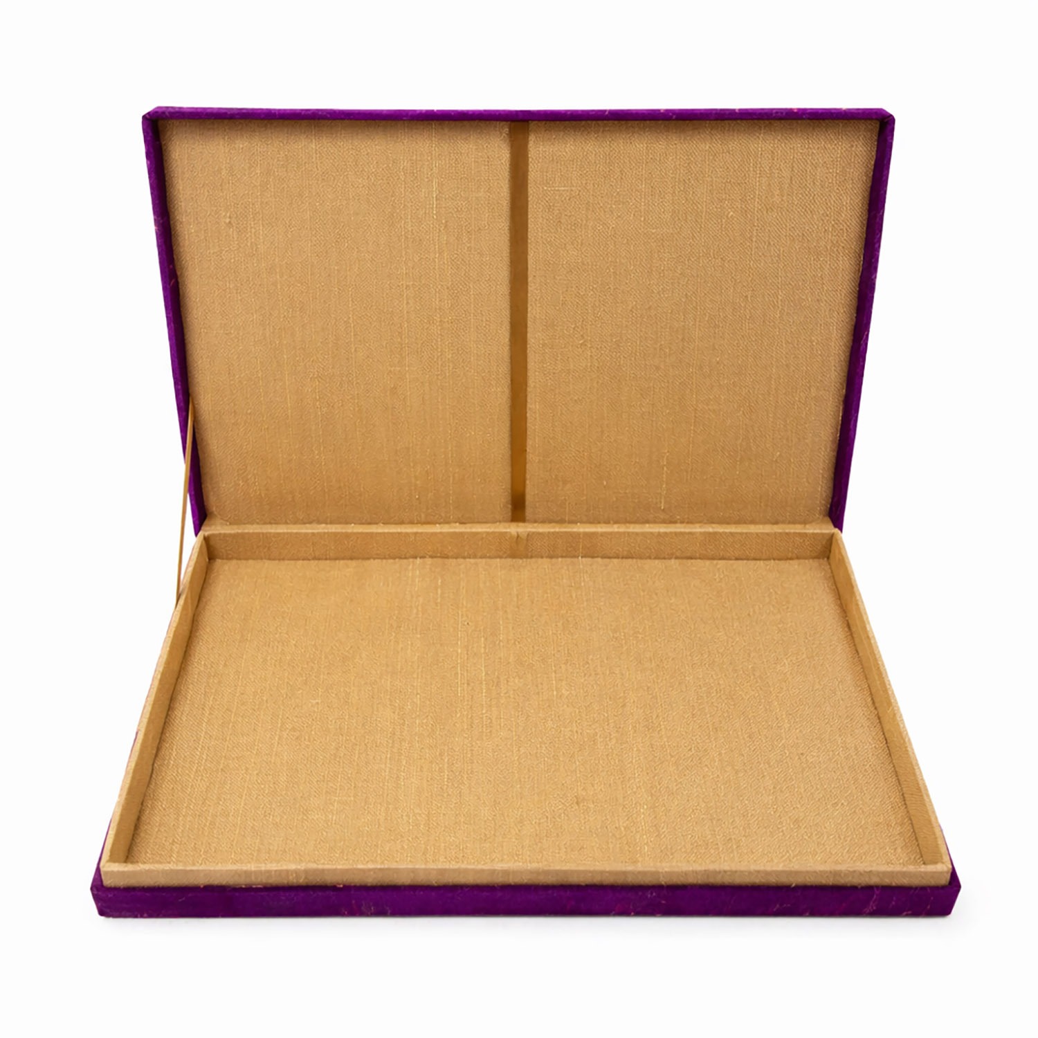 This exquisite invitation box is made from 100% 4 ply Thai silk, offering a rich texture and refined sheen that reflects true Thai craftsmanship. The elegant purple exterior is paired with goldenrod embroidery, carefully matched to the interior lining for a harmonious two-tone design — ideal for weddings and events featuring multiple color themes.