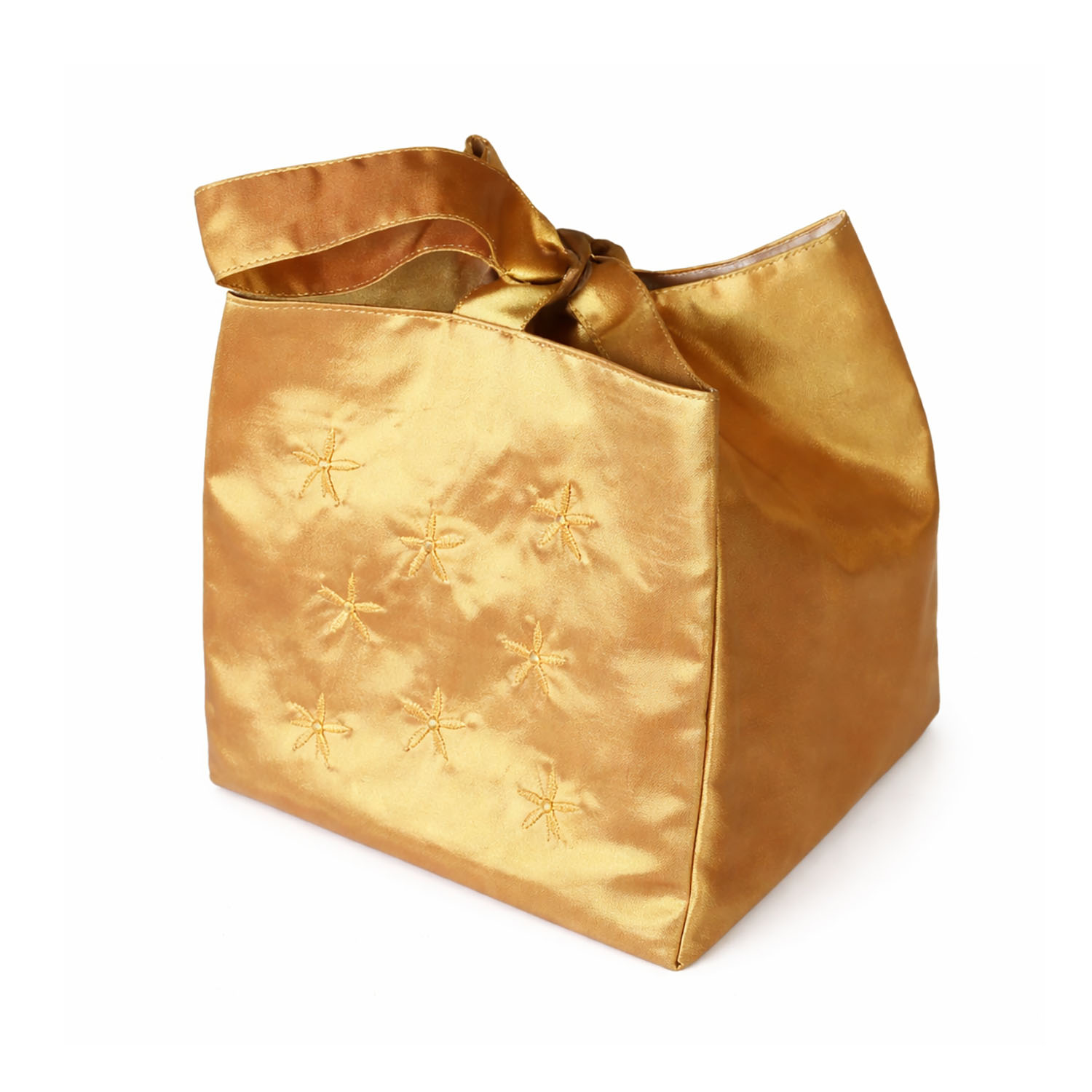 Embroidered square shape silk bag in gold