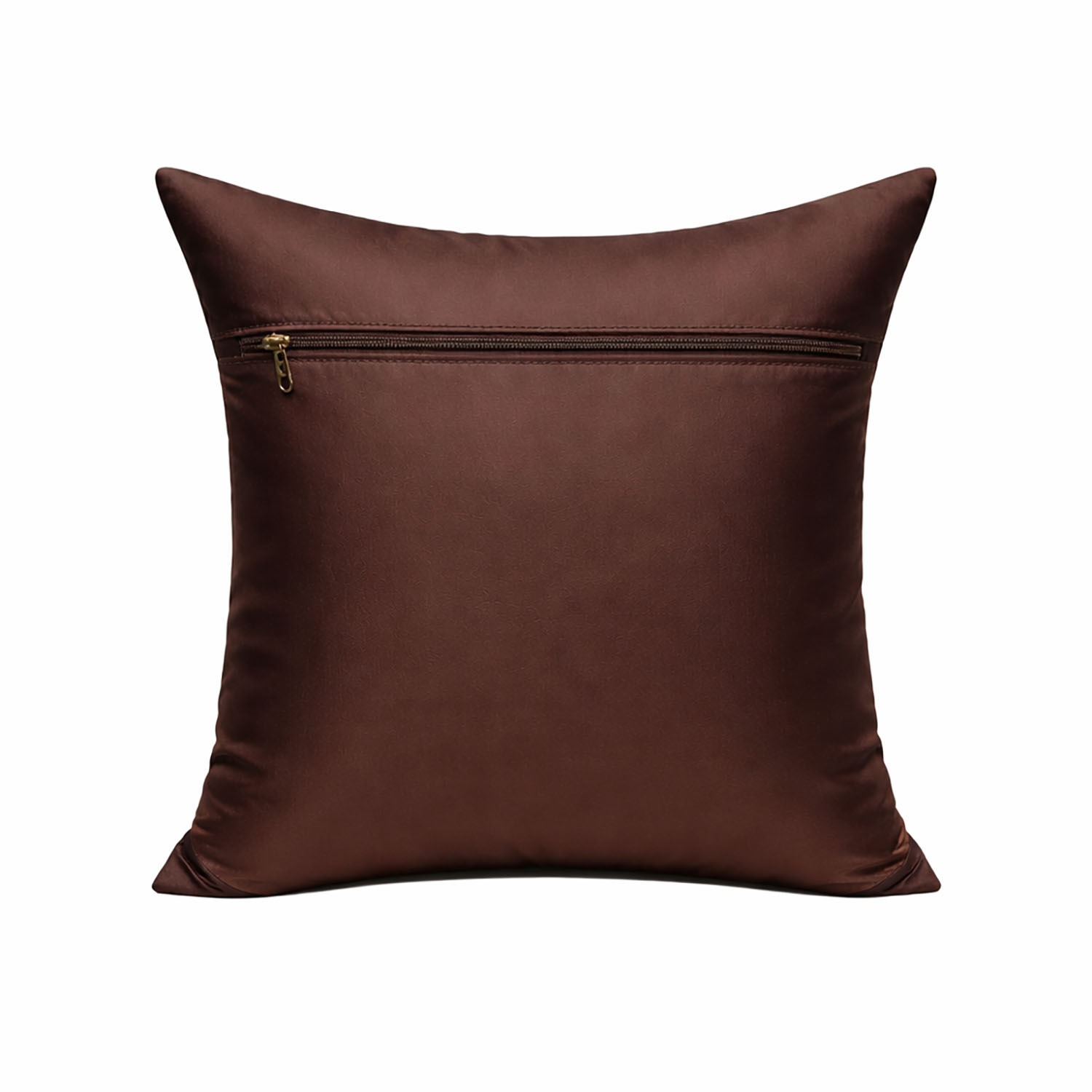 Carefully crafted by skilled artisans in Chiang Mai, this cushion highlights the beauty of genuine Thai silk. Known for its natural sheen, smooth texture, and refined appearance, Thai silk adds a touch of luxury to any space. The elegant pairing of rich chocolate and warm bronze silk panels enhances the natural luster of the fabric and creates a timeless decorative piece.