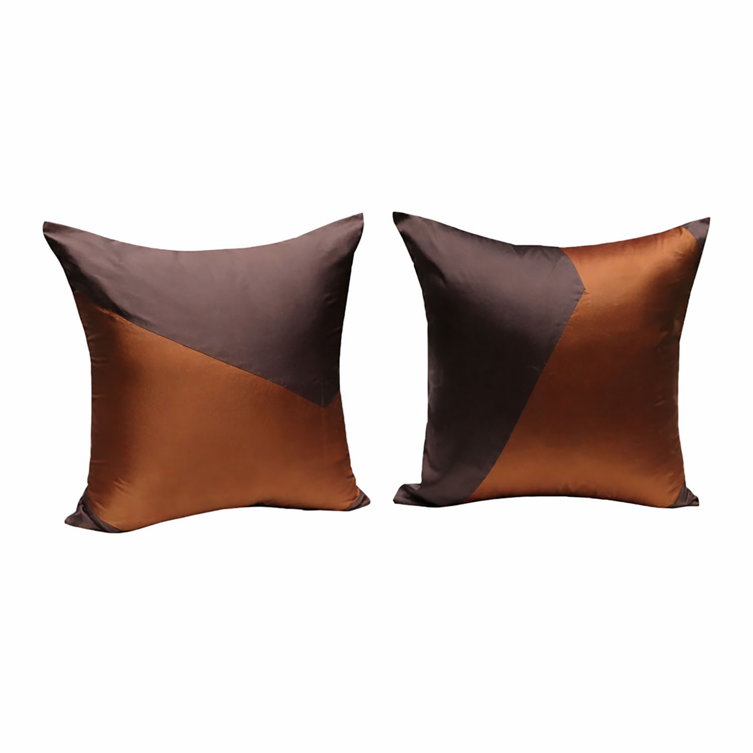 The cushion features a stylish two-color geometric design arranged in a square shape. The combination of chocolate and bronze tones creates a warm and sophisticated look that works beautifully in both modern and traditional interiors.