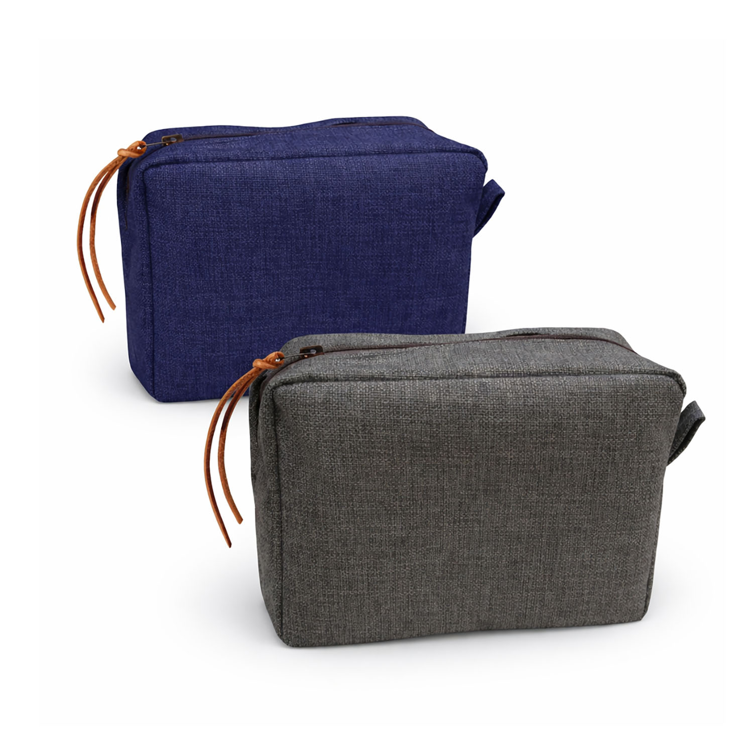 Durable and timeless pure hemp cosmetic bag in charcoal color and navy blue. Pack your cosmetics in style with our environment friendly packaging designs.