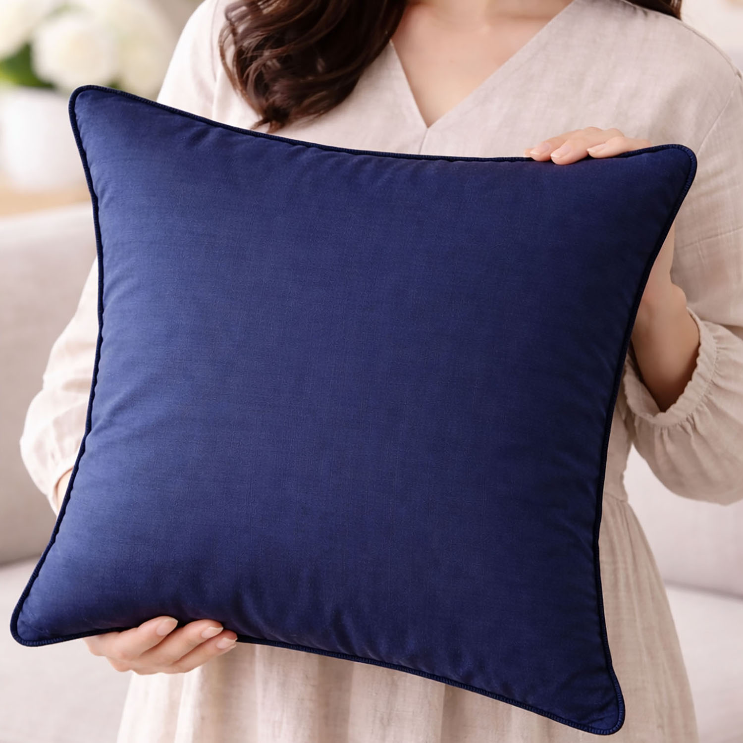 This cushion cover is especially suited for resorts, boutique hotels, luxury villas, and home décor stores seeking distinctive yet timeless accessories. The navy blue color pairs effortlessly with neutral palettes, wood interiors, stone finishes, and coastal or urban aesthetics. Whether styled on beds, sofas, lounge chairs, or lobby seating, it adds a polished, welcoming touch.