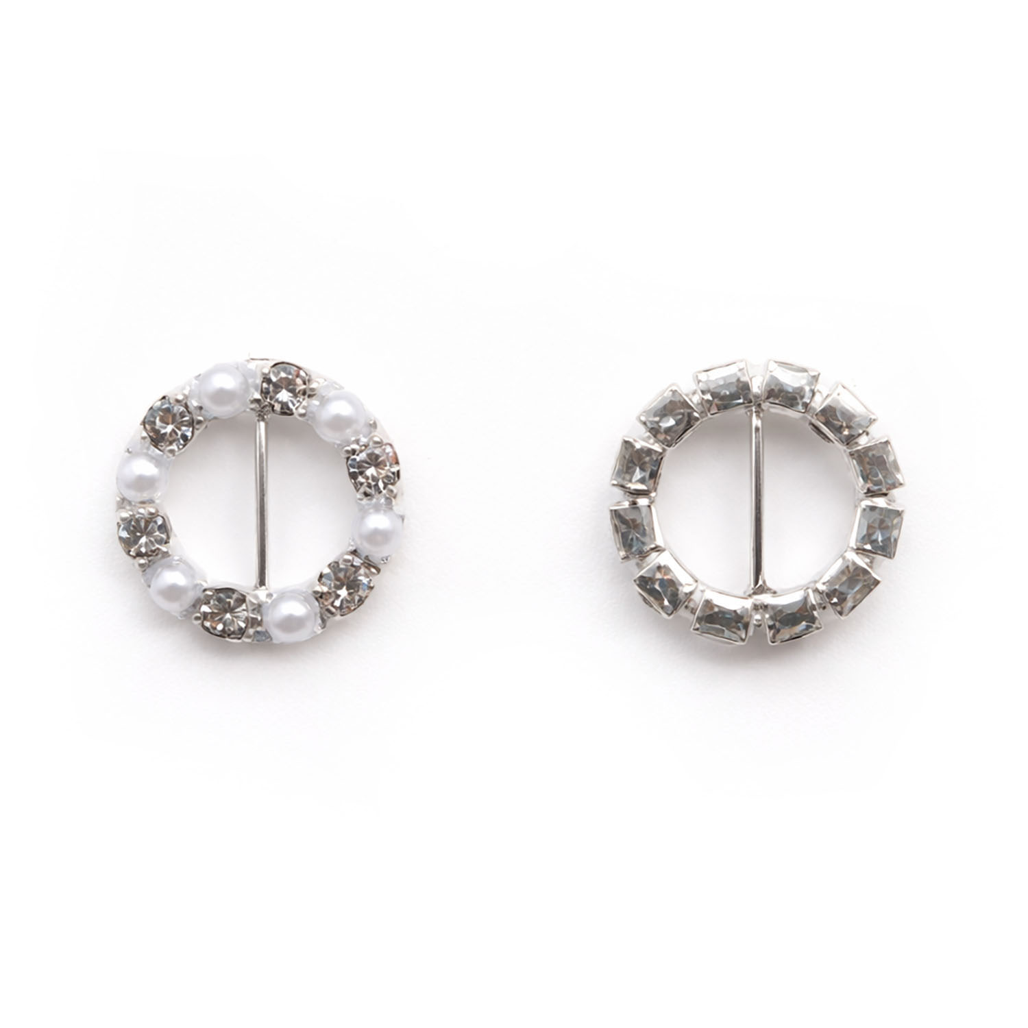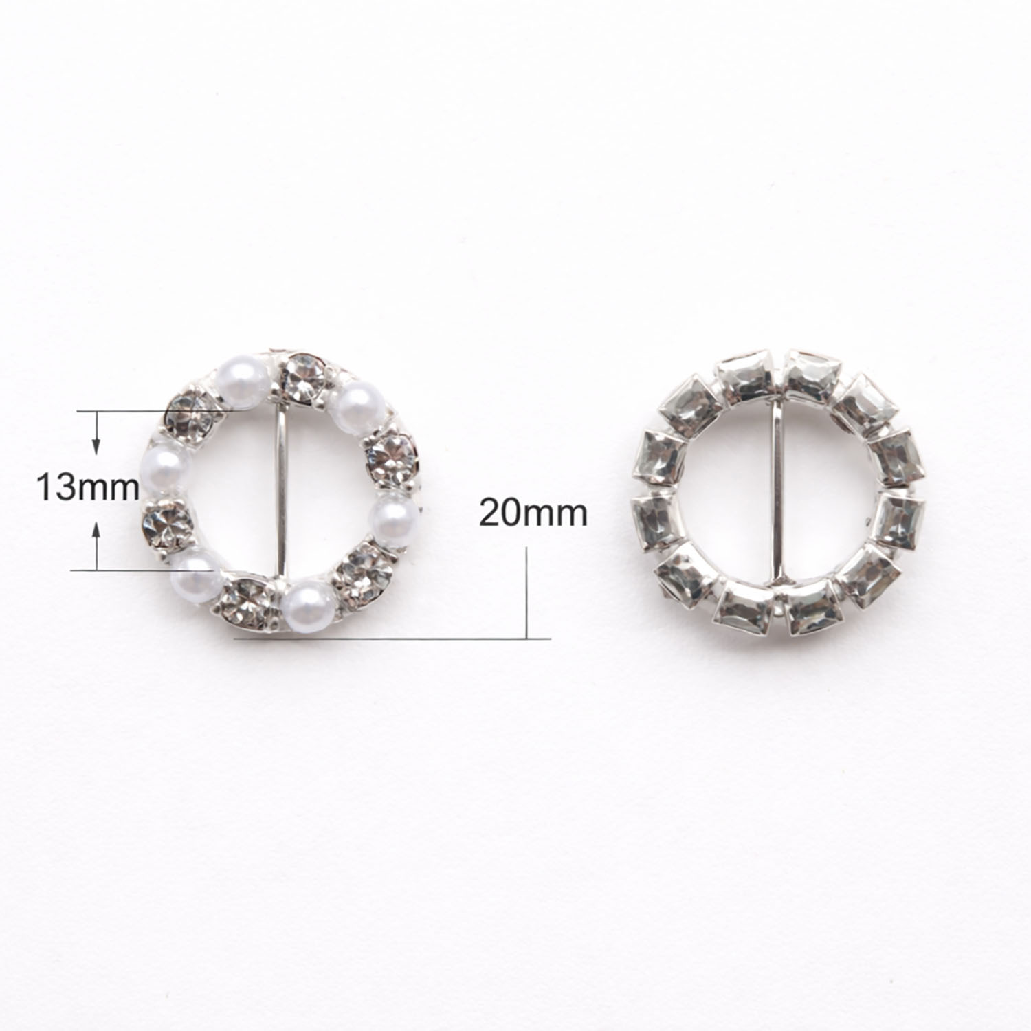 Add a refined, luxurious touch to your wedding creations with this round pearl and crystal buckle. Designed with alternating white pearls and sparkling clear rhinestones, this embellishment delivers timeless elegance perfect for bridal accessories and premium packaging.
